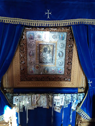 Традиция гласит, что на месте пляжа Мавра Литариас из-за кораблекрушения море сметало много дров. В этом месте каждую ночь жители видели плавающий свет, но когда они приблизились к нему, он ушел. В течение дня многие люди приходили в это место и собирали дрова с кораблекрушения. Для этого пришли двое слуг из семей Бенарди и Николеса со своими животными. Когда они начали выбирать дерево, слуга Николая нашел квадратный кусок дерева, ударил его киркой и приготовился ударить его снова. Но когда он снова взял кирку, его руки оставались неподвижными. Второй слуга, увидев его с поднятыми руками, побежал посмотреть, что происходит. Он со страхом подхватывает парадоксальный лес и видит, что это изображение Девы Марии. Они немедленно передали икону в церковь Агиос Афанасиос в Кими. Ночью, чудесным образом, икона Девы Марии покинула церковь Агиос Афанасиос и пришла к месту, где сегодня строится ее церковь. Он принадлежит Священной епархии Каристия и Скирос.