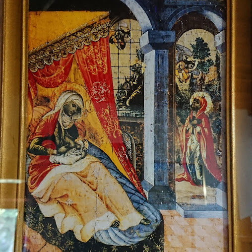 икона подписано "Древняя икона Панагия Пантанасса Мистра", но нескольел отличная от находящейся в иконостасе (явно по другому расположены Ангелы)