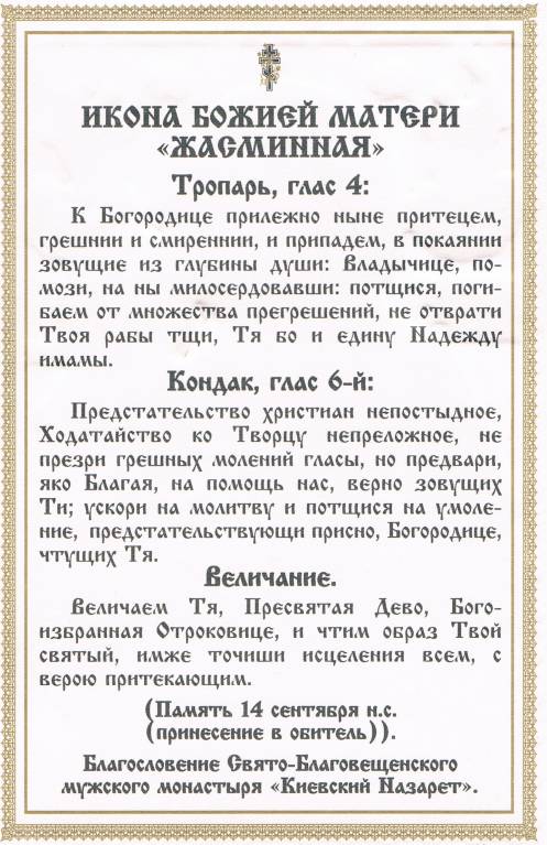 Жасминная икона. Свято-Благовещенский мужской монастырь "Киевский Назарет"